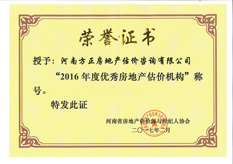河南省2017年度优秀房地产估价机构