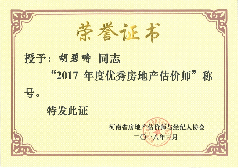 胡碧畴 河南省房地产价格评估委员会2018-2019年度专家